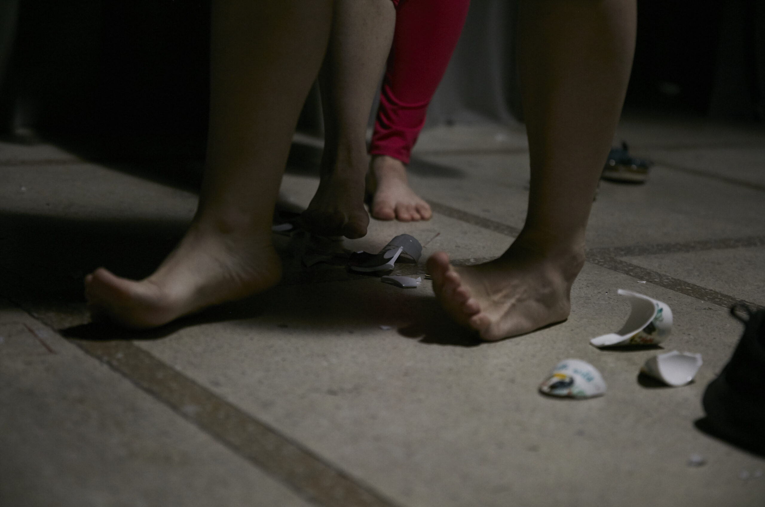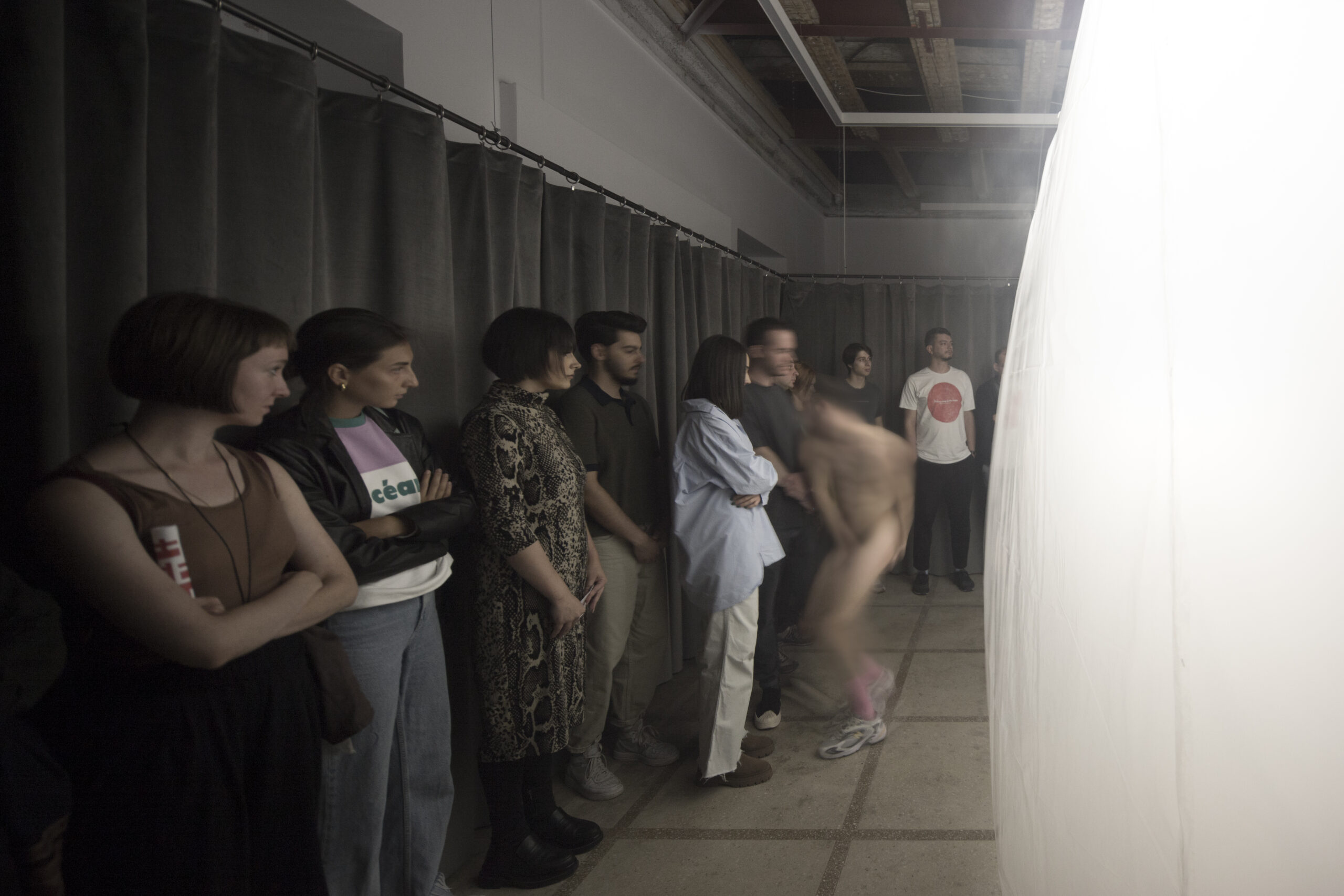 instalație performativă? Dacă adaug că în bună parte din cele 35-40 de minute de spectacol artiștii sunt goi asocierea cu the f word pare că e departe câștigătoare spânzurătorii. Și totuși, acel F și acele spații goale pot, la fel de bine, să vorbească și despre FRICĂ.”